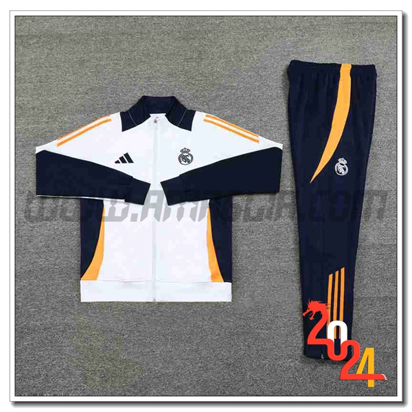Tuta Allenamento Giacca Real Madrid Bianco/Blu/Arancia 2024 2025