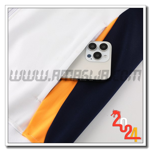 Nuova Tuta Giacca Allenamento Real Madrid Bianco/Blu/Arancia 2024/2025. sito affidabile per l'acquisto tute da calcio a poco prezzo