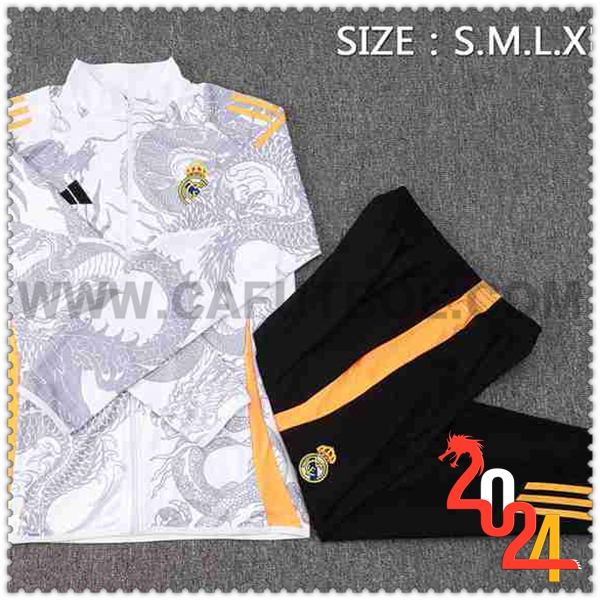 Tuta Allenamento Giacca Real Madrid Bianco/Grigio/Arancia 2024 2025