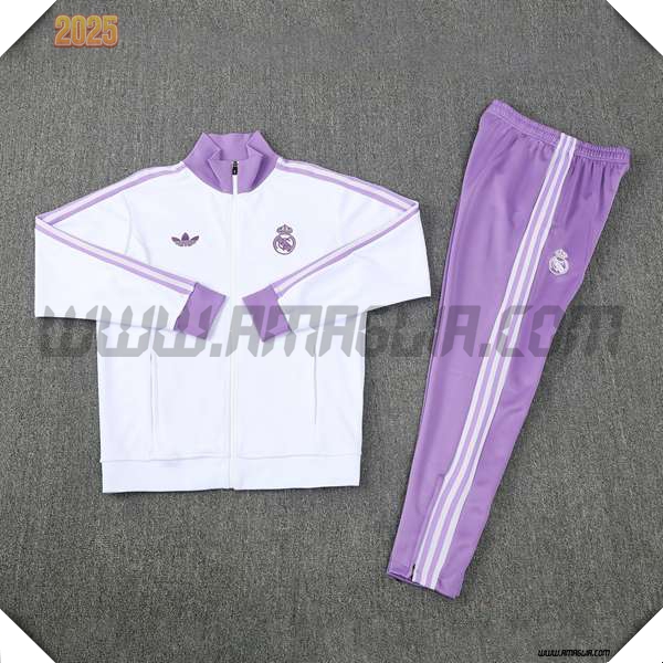 Nuova Tuta Allenamento Giacca Real Madrid Bianco/viola 2025/2026. sito affidabile per l'acquisto tute da calcio a poco prezzo