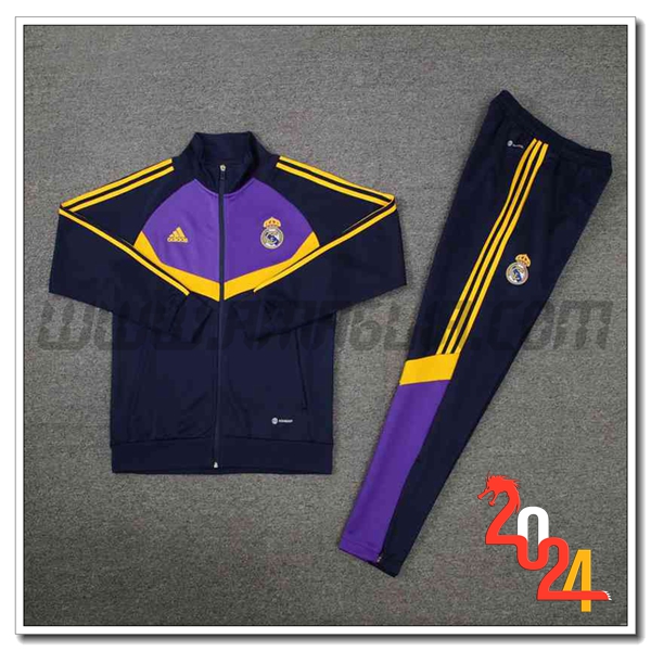 Nuovo Tuta Allenamento Giacca Real Madrid Blu/Viola/Giallo 2024/2025. sito affidabile per vendere tuta allenamento calcio squadre a poco prezzo