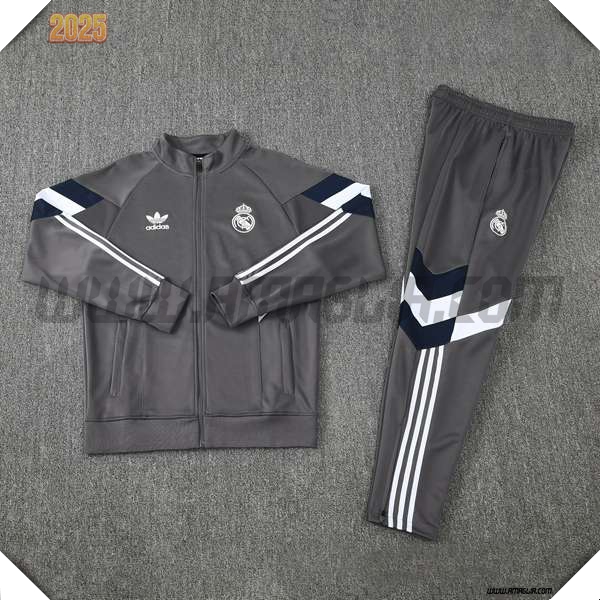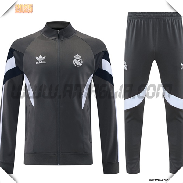 Nuovo Tuta Allenamento Giacca Real Madrid Grigio/Bianco/Nero 2025/2026. sito affidabile per l'acquisto tute squadre calcio a poco prezzo