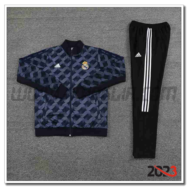 Nuovo Tuta Allenamento Giacca Real Madrid Nero/Blu 2023/2024. sito affidabile per l'acquisto tute calcio a poco prezzo