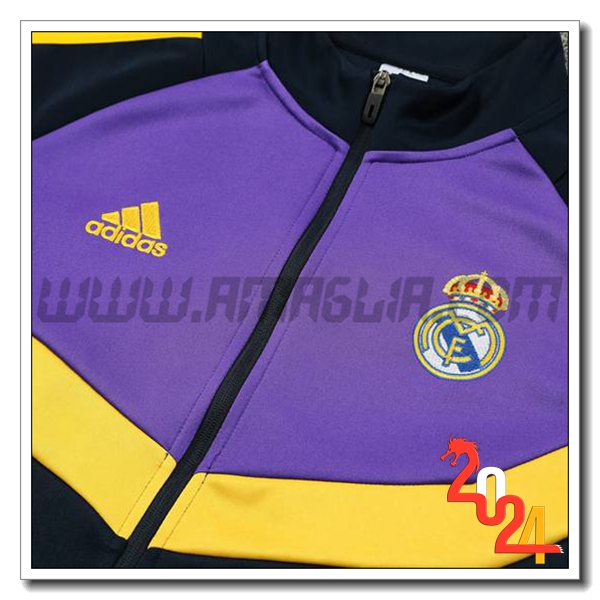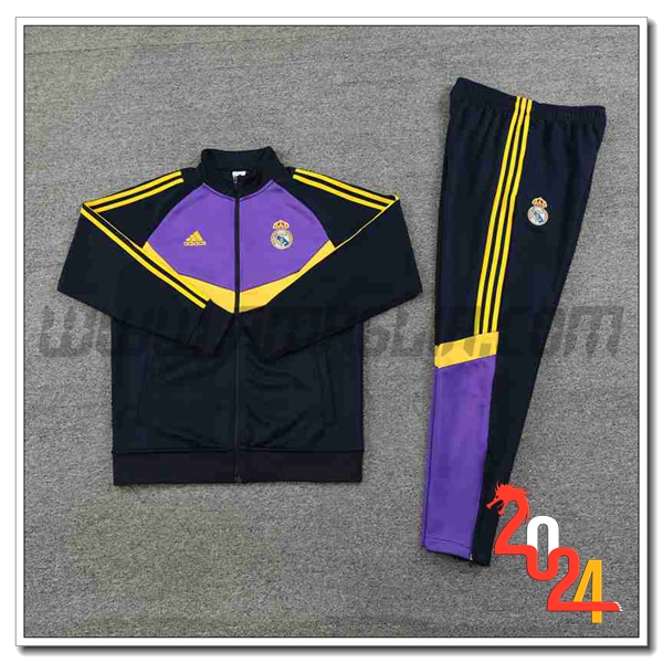Tuta Allenamento Giacca Real Madrid Nero/viola/Giallo 2024 2025