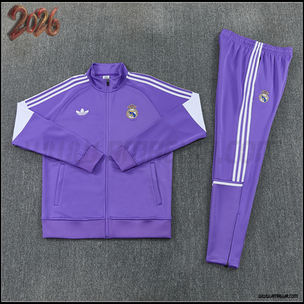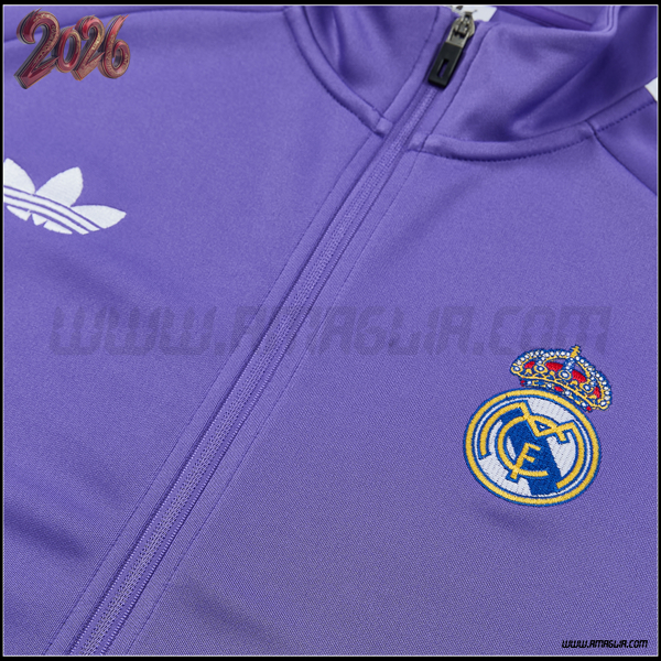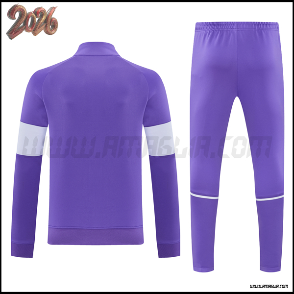 Nuovo Tuta Allenamento Giacca Real Madrid viola/Bianco 2026 2027. sito affidabile per l'acquisto tute squadre calcio a poco prezzo
