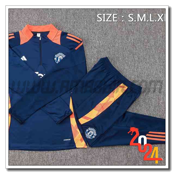 Nuova Tuta Allenamento Manchester United Blu/Arancia 2024/2025 -03. sito affidabile per l'acquisto tute squadre calcio a poco prezzo