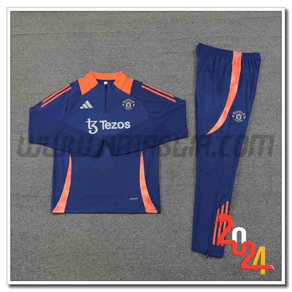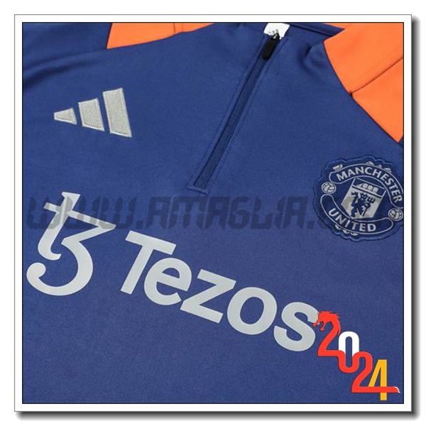 Nuovo Tuta Allenamento Manchester United Blu/Arancia 2024/2025. sito affidabile per l'acquisto tute calcio a poco prezzo