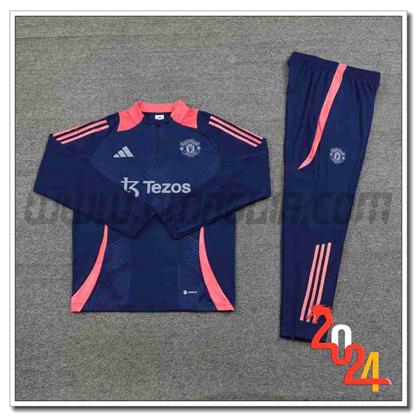 Nuovo Tuta Allenamento Manchester United Blu/Rosa 2024/2025. sito affidabile per l'acquisto tute calcio a poco prezzo