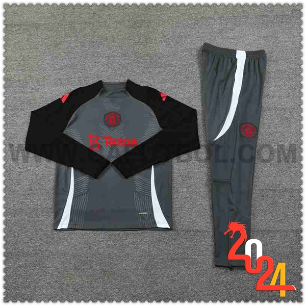 Nuovo Tuta Allenamento Manchester United Grigio/Nero/Bianco 2024/2025 -02. sito affidabile per vendere tuta allenamento calcio squadre a poco prezzo