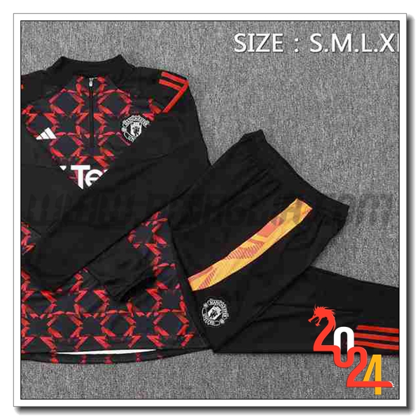 Nuovo Tuta Allenamento Manchester United Nero/Rosso 2024/2025. sito affidabile per l'acquisto tute calcio a poco prezzo