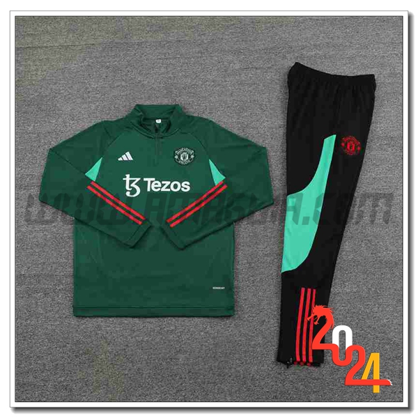 Nuovo Tuta Allenamento Manchester United Verde/Nero 2024/2025. sito affidabile per vendere tuta allenamento calcio squadre a poco prezzo