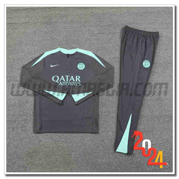 Nuova Tuta Allenamento PSG Grigio/Verde 2024/2025. sito affidabile per l'acquisto tute da calcio a poco prezzo