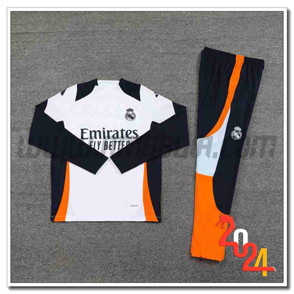 Nuova Tuta Allenamento Real Madrid Bianco/Blu/Arancia 2024/2025 -02. sito affidabile per l'acquisto tute squadre calcio a poco prezzo