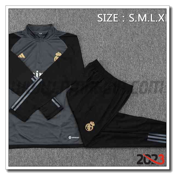 Nuova Tuta Allenamento Real Madrid Grigio/Nero 2023/2024. sito affidabile per l'acquisto tute squadre calcio a poco prezzo