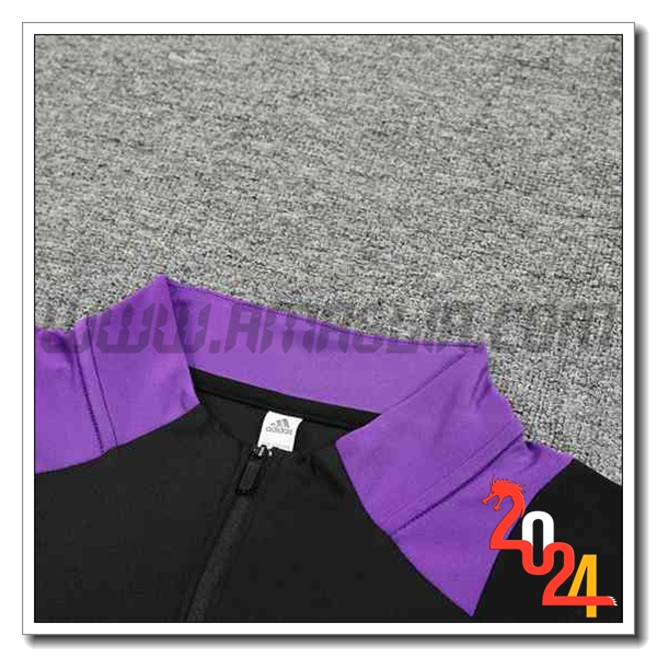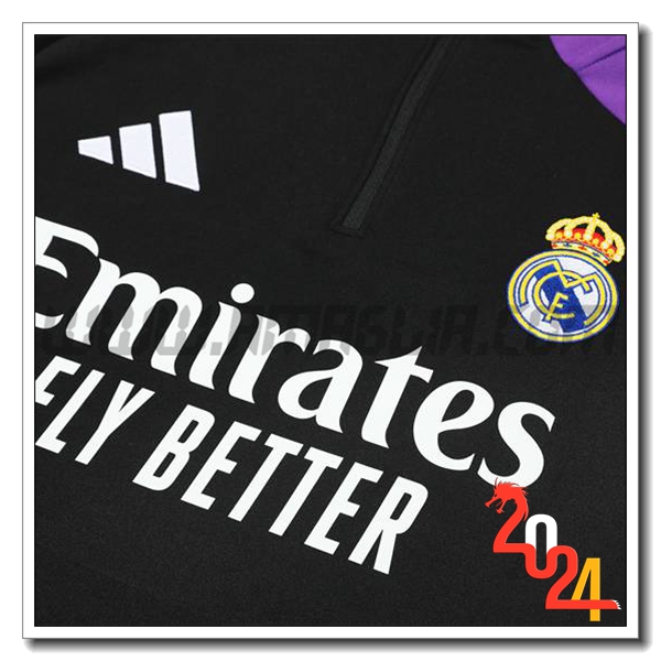 Nuovo Tuta Allenamento Real Madrid Nero/Bianco/viola 2024/2025. sito affidabile per vendere tuta allenamento calcio squadre a poco prezzo