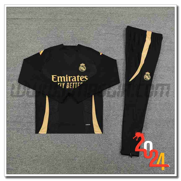 Nuova Tuta Allenamento Real Madrid Nero/Giallo 2024/2025 -03. sito affidabile per l'acquisto tute calcio a poco prezzo