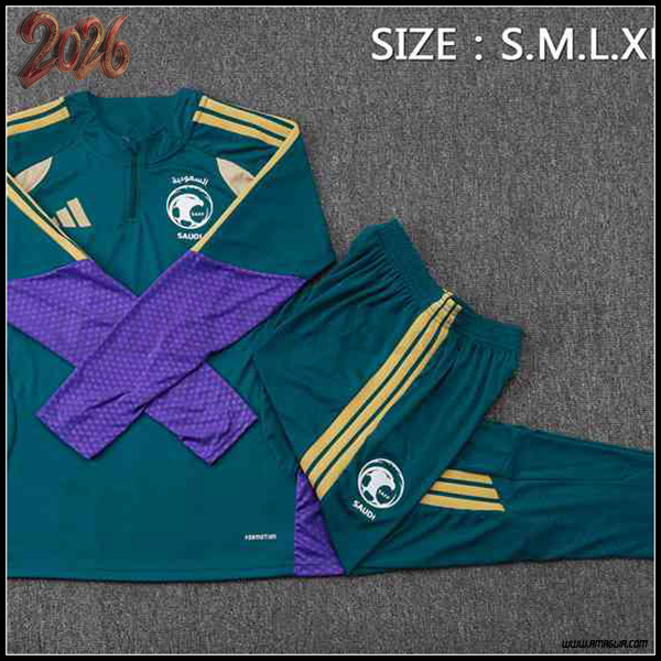 Nuovo Tuta Calcio Arabia Saudita Verde/viola/Giallo 2025 2026. sito affidabile per l'acquisto tute squadre calcio a poco prezzo