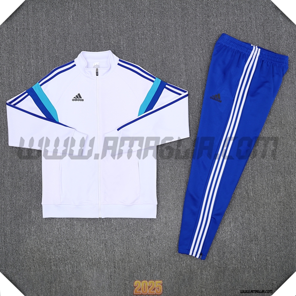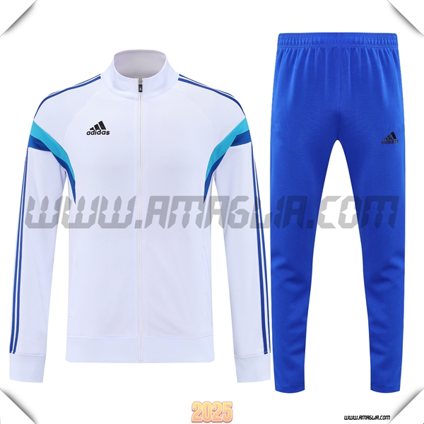 Nuova Tuta Calcio Giacca Adidas Bianco/Blu 2025/2026. sito web affidabile per ordinare tute di calcio a basso prezzo