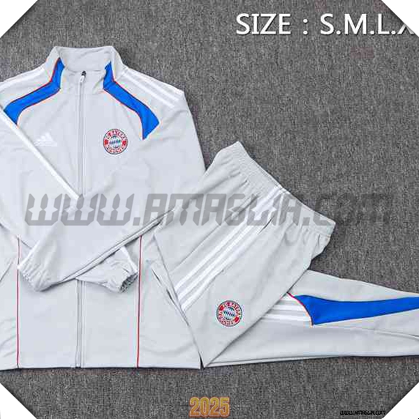 Nuova Tuta Calcio Giacca Bayern Monaco Grigio/Bianco/Blu/Rosso 2025/2026. sito web affidabile per ordinare tute di calcio a basso prezzo
