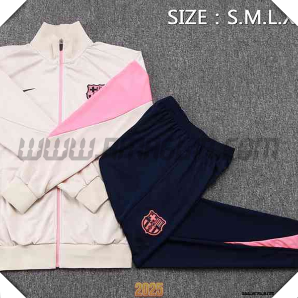 Nuova Tuta Calcio Giacca FC Barcellona Beige/Rosa 2025/2026. sito affidabile per vendere tute calcio a poco prezzo