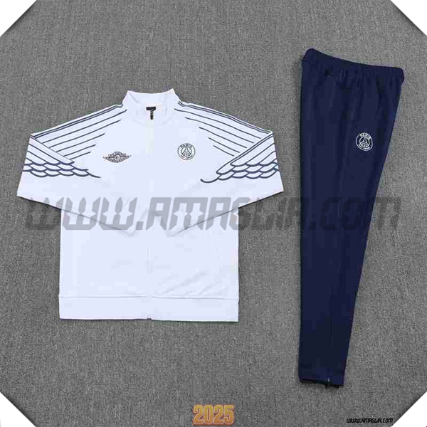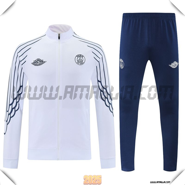 Nuovo Tuta Calcio Giacca PSG Bianco/Blu 2025/2026. sito affidabile per vendere tuta allenamento calcio squadre a poco prezzo