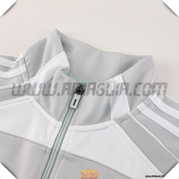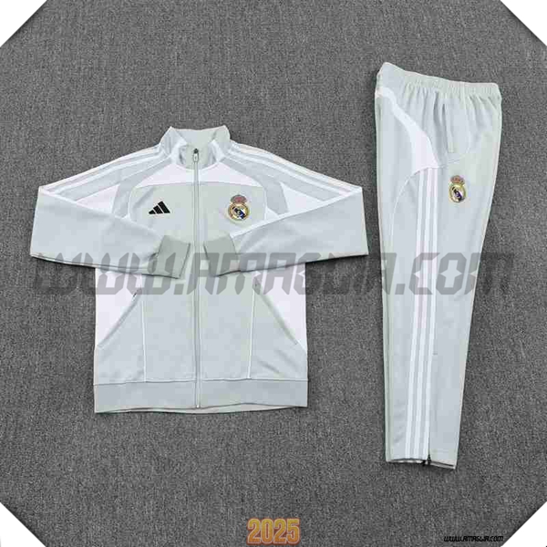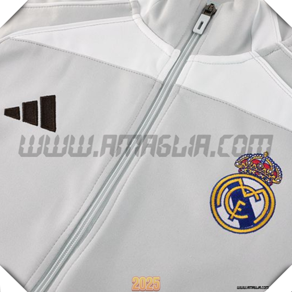 Nuova Tuta Calcio Giacca Real Madrid Grigio/Bianco 2025/2026. sito affidabile per vendere tute calcio a poco prezzo