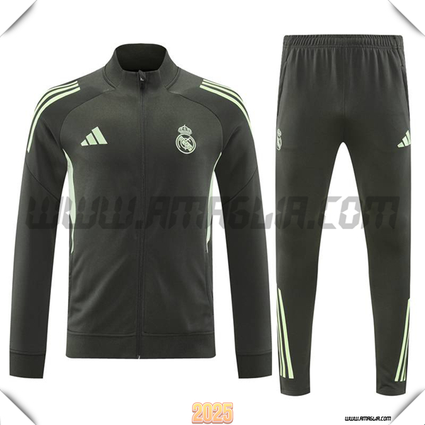 Nuova Tuta Calcio Giacca Real Madrid Marrone/Verde 2025/2026. sito affidabile per l'acquisto tute da calcio a poco prezzo