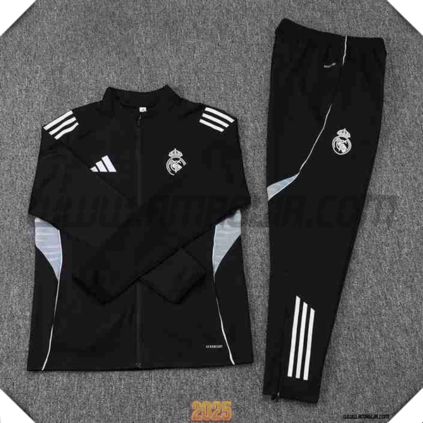 Nuova Tuta Calcio Giacca Real Madrid Nero/Grigio 2025/2026 -02. sito web affidabile per ordinare tute di calcio a basso prezzo