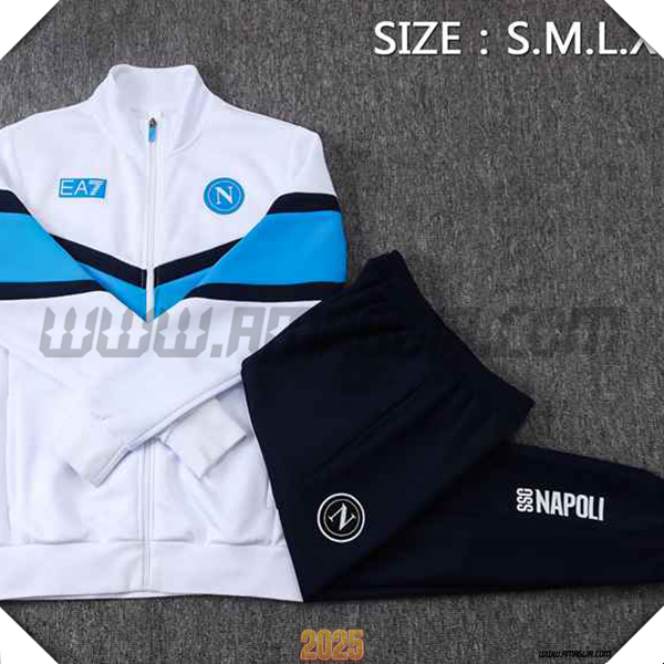 Nuovo Tuta Giacca allenamento SSC Napoli Bianco/Blu 2025/2026. sito affidabile per l'acquisto tute squadre calcio a poco prezzo