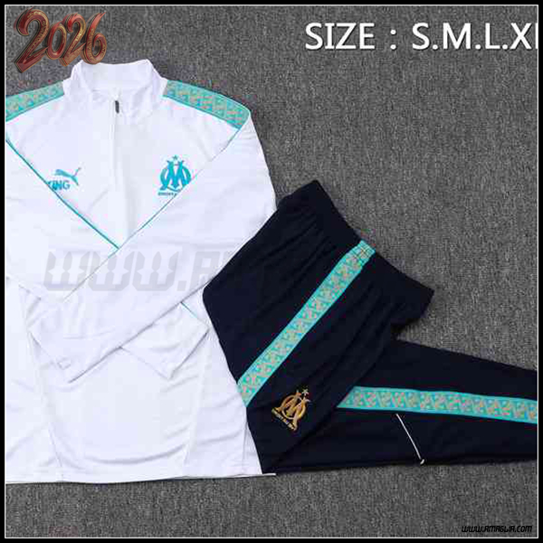 Nuovo Tuta Calcio Marsiglia Bianco/Verde 2025 2026. sito affidabile per vendere tuta allenamento calcio squadre a poco prezzo