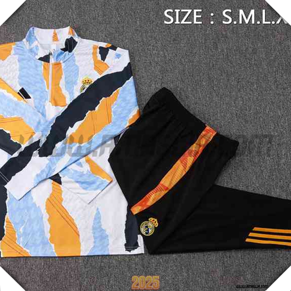 Tuta Giacca Allenamento Real Madrid Bianco/Blu/Arancia 2024 2025 -02