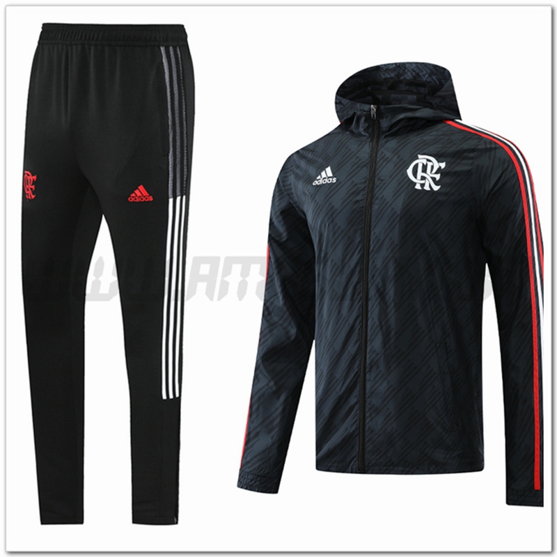 Tuta Giacca a Vento con Cappuccio Flamengo Nero 2022 2023