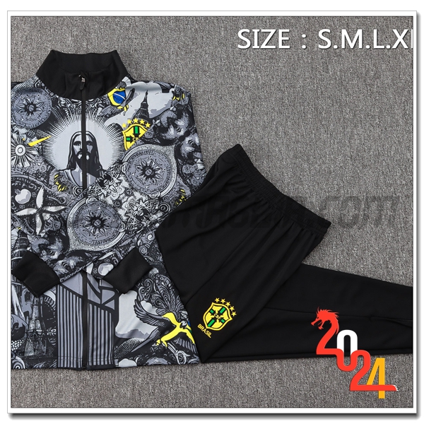 Tuta Giacca Allenamento Brasile Grigio/Nero 2024 2025