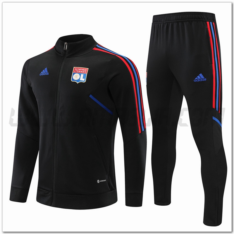 Buono Sconto Tuta Giacca Allenamento Lyon OL Nero 2022/2023. siti affidabili tute squadre calcio a poco prezzo