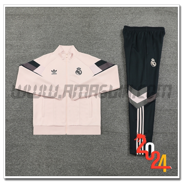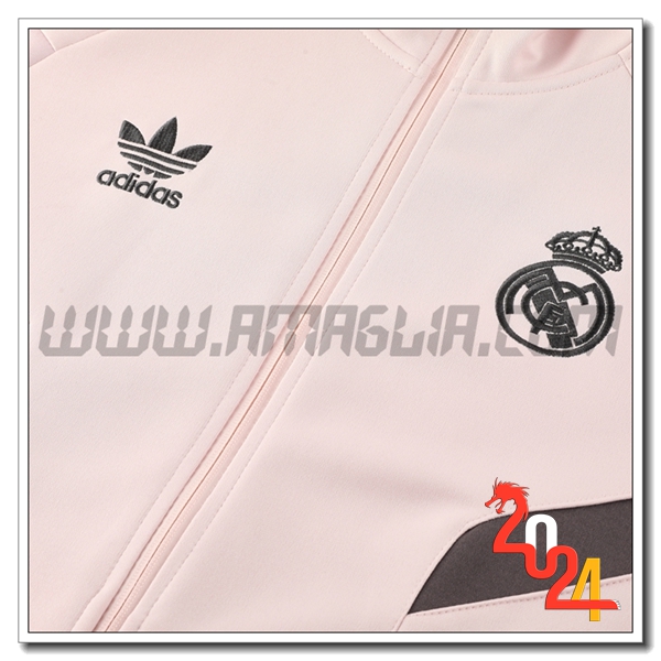 Nuovo Tuta Giacca Allenamento Real Madrid Rosa/Nero/Grigio 2024/2025. sito affidabile per vendere tuta allenamento calcio squadre a poco prezzo