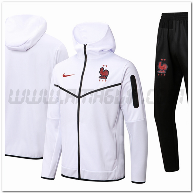 Buono Sconto Tuta Giacca con Cappuccio Francia Bianco 2022/2023. siti affidabili tute squadre calcio a poco prezzo