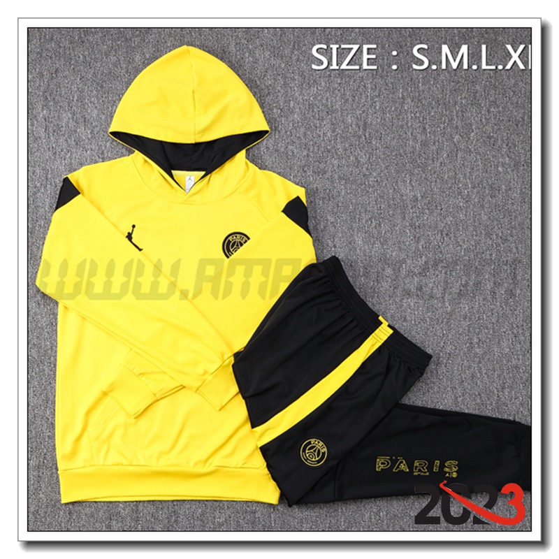 Nuova Tuta Giacca Con Cappuccio Jordan PSG Giallo 2023/2024. sito affidabile per l'acquisto tute calcio a poco prezzo