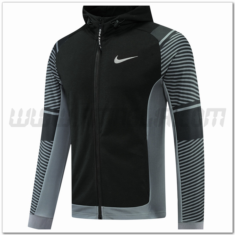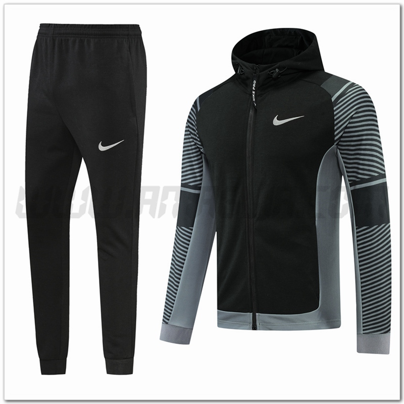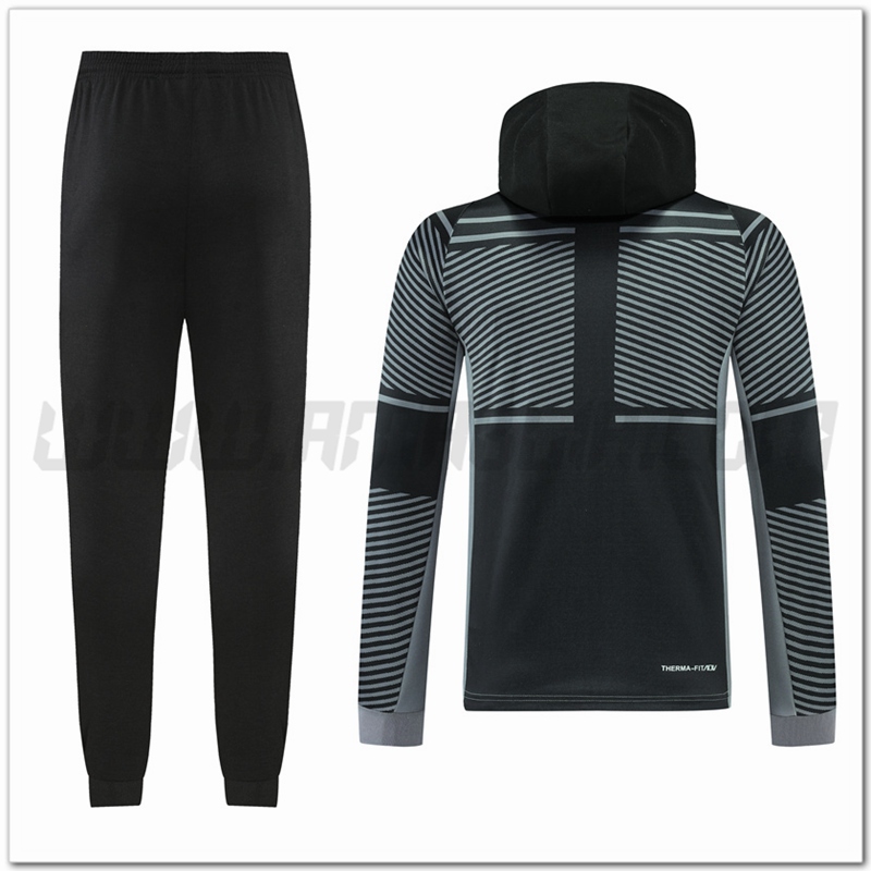 Copie Perfette Tuta Giacca con Cappuccio Nike Nero/Grigio 2022/2023. siti affidabili tute di calcio a basso prezzo